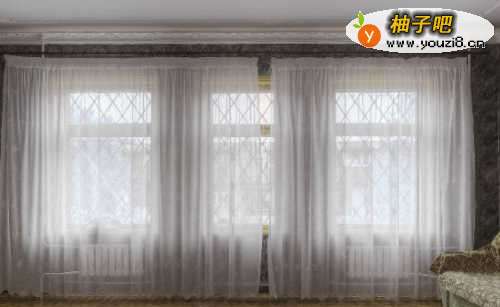 安装薄纱窗帘: