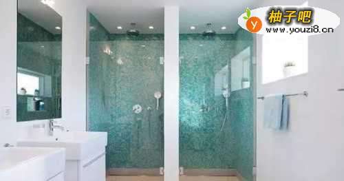 3卫浴间墙壁墙纸和格子的选择,绿色的格子装饰墙壁,会显得更为环保,更多有新鲜活力,展现自然清新。