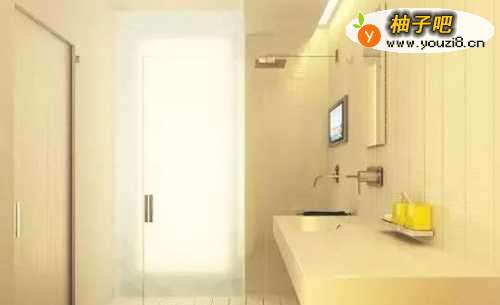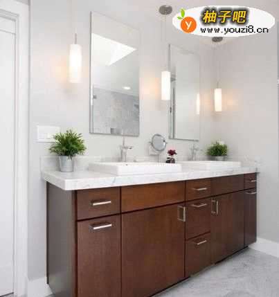 2首先就是卫浴间里面的照明灯的设计,能才有独特一点的风格,一左一右这样设计,会显得空间比较大,照明光线范围强