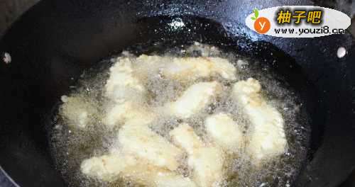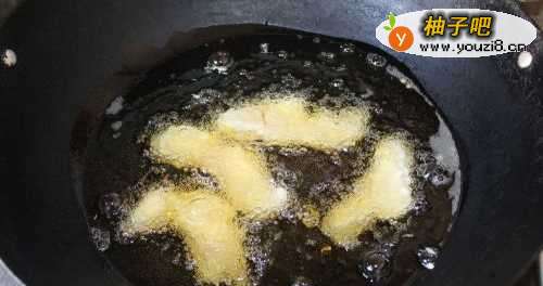 8所有的都炸好后,将油再次烧热,将鱼柳放入锅中复炸一下。