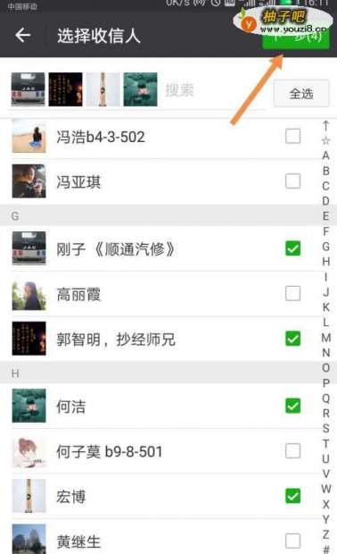 5勾选我们要发送祝福语的亲友,点选下一步