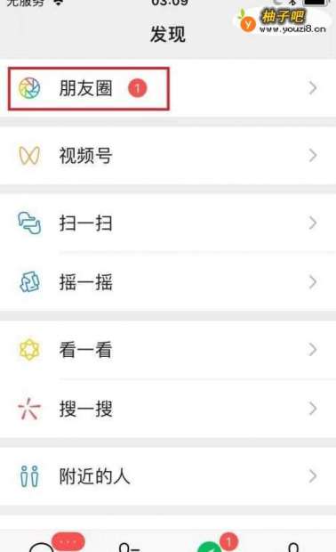 2在“发现”页面,点击“朋友圈”。