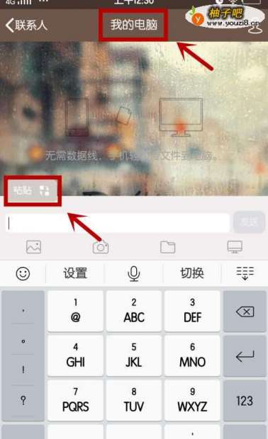 2我们需要把手机QQ和电脑QQ同时在线, 点击我的电脑, 粘贴并且发送。