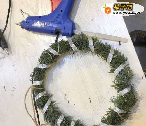 10开始缠喜欢的丝带装饰,用胶枪粘一下