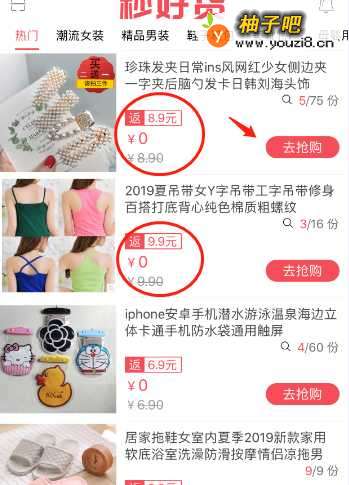 现在有零元商品的软件比较多,首先找到相应的一些零元的商品