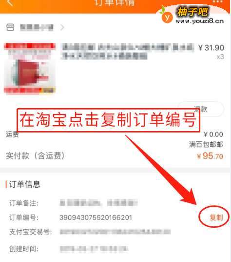 2抢购后会跳转对于平台进行下单,下单后复制此订单的订单编号