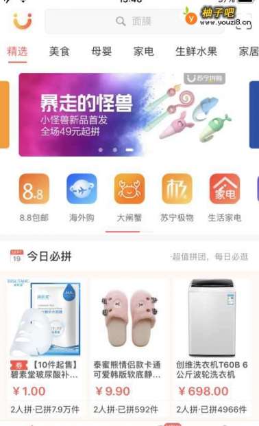 4进入首页,我们就能看到各种各样的能拼团的产品,有的是苏宁自营的,有的是第三方供应商的。