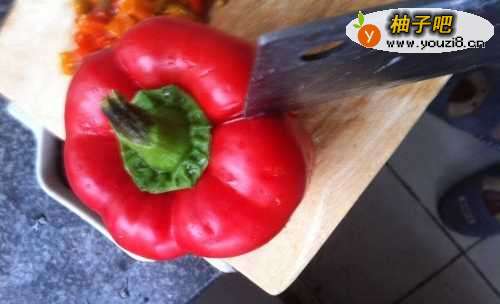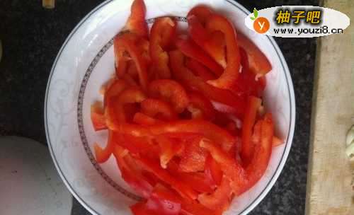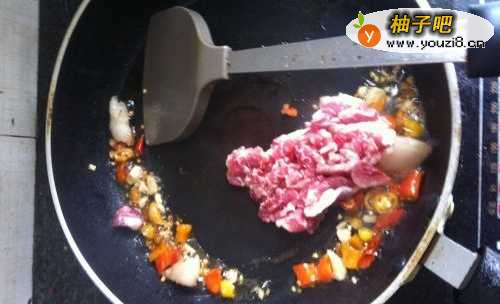 5等到甜椒炒到快要熟时,加入少量的水进去,这样带点汤汁能让甜椒跟猪肉的味道融合。