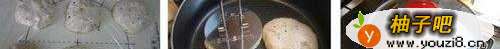 4锅中放少许油,放入包好的糖饼,用压饼的小模子不断的按压饼,然后反面