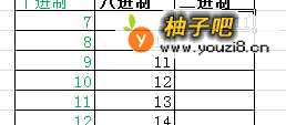 新建或开启Excel表格,输入下图所示的内容,便于后续案例介绍,其中前面那一列十进制的数据供参考。