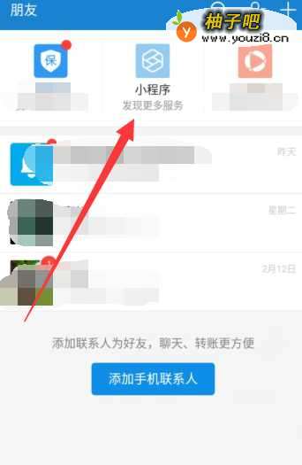 2启用朋友界面后,在上方能看到“小程序”按钮,点击倘材即可启用添加小程序界面,找到所需应用。