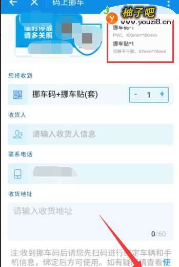 4启用后,能看到制捕颂作挪车码的好处,能保护个人隐私等,接着点击箭头指的“申请邮寄”按钮,申请相关套件。