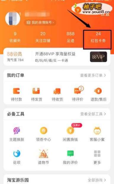 5进入我的淘宝界面,点击右边的卡券