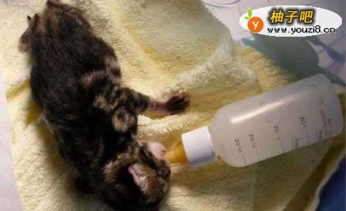 在宠物商店买小奶猫专用的奶粉,切记不能喂食纯牛奶,猫咪是有乳糖不耐症的,若是喂食纯奶,会使它们拉肚子。可在猫奶中适量加入一些鱼肝油和钙片补充小奶猫所需的营养。