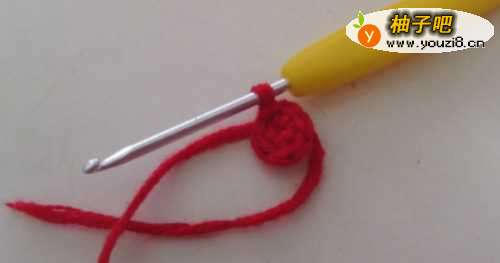第1圈:环形起针,在线圈里钩6个短针,然后抽紧线头,与第一针进行引拔针连接,完成第一圈的钩织。
