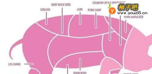 猪的身体各个部分的英文单词表示。认识它们会给我们在美国超市购买猪肉带来帮助。