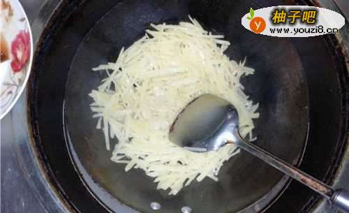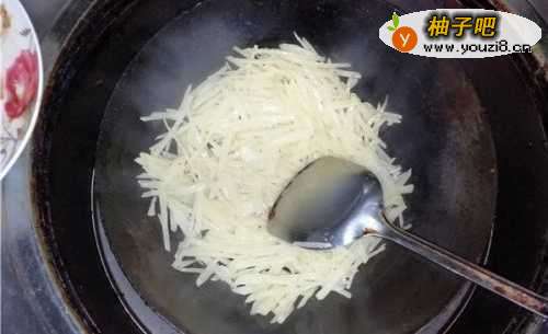 6炒个五分钟,土豆丝就熟了,一道简单的炒土豆丝就做好了