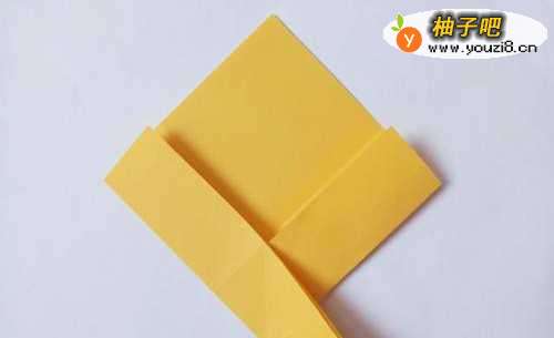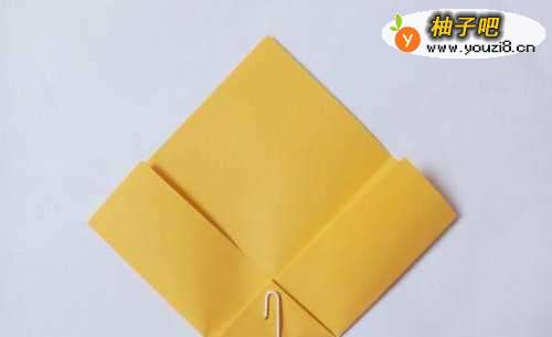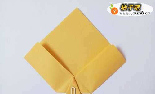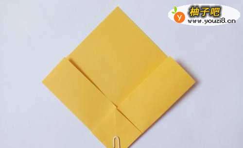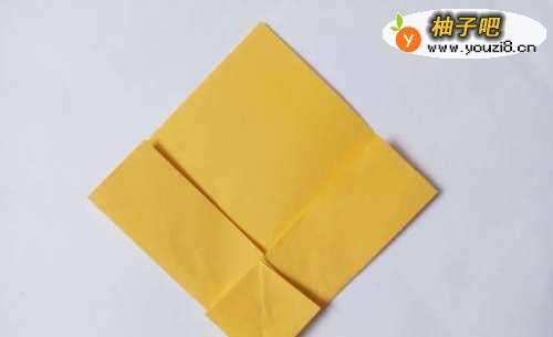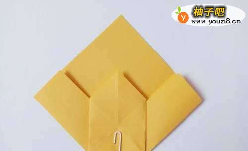 11将小正方形的两个边向中线折叠,将下面的角向上折叠。