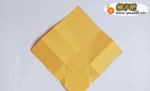 10将两边沿着折痕往里推,折叠成正方形。