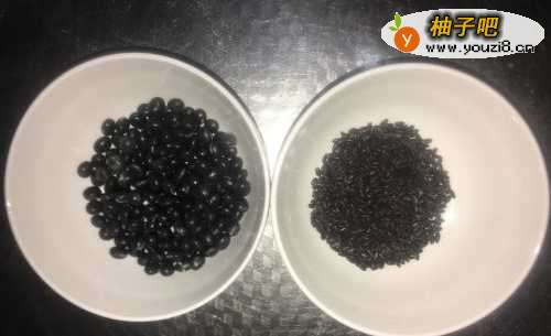 取黑豆、黑米各100克,淘洗干净,加入豆浆机。
