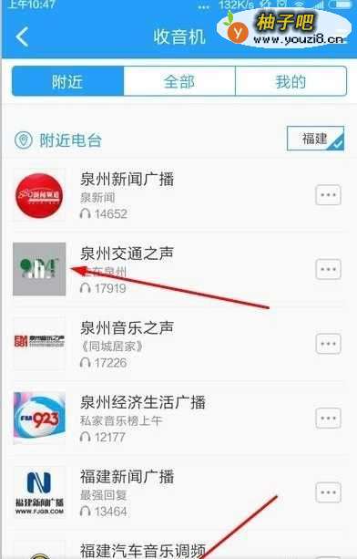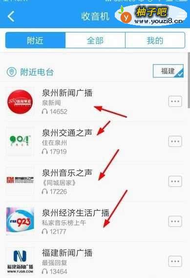 3进入到附近电台的栏目,根据我们喜欢的节目选择电台