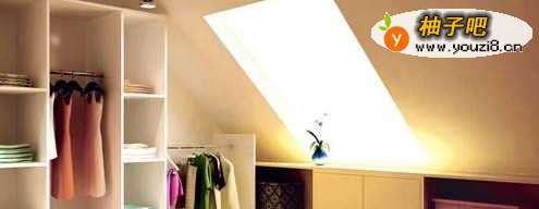 6斜顶利用之储物柜斜顶斜到一定程度,就变成了废空间,怎样变废为利?答案就是做储物柜。另一方面储物柜的外沿能使斜顶的视觉变高,一方面,柜子里面确实能装很多东西。
