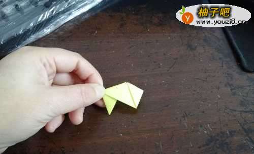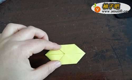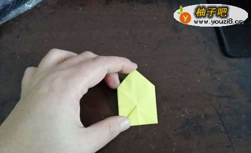 3把相对的两个角向内折,然后翻到背面,如图所示。