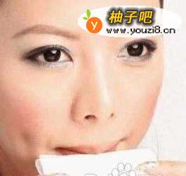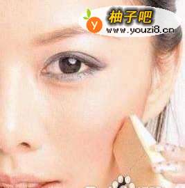 下眼线位置方式一样,只要用三角海绵较薄的一端轻擦即可。