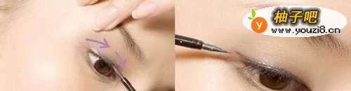 3画眼线时,能用手往上拉住眼皮,按照“从眼尾到中部,
