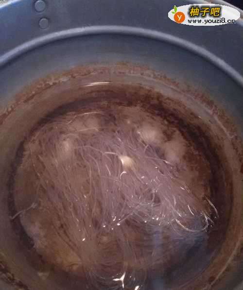 4将粉丝先用清水冲一下,然后放入开水中,将粉丝煮熟。