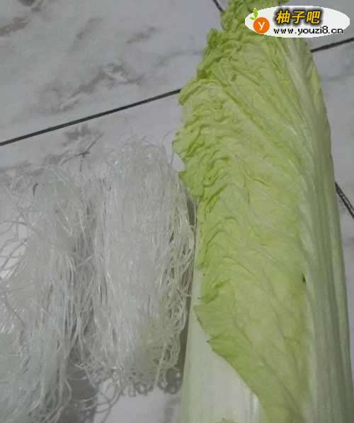 将白菜洗净,最好用白菜心,比较嫩,再准备一小团粉丝。