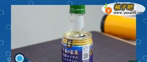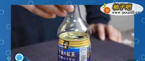 4接着将塑料瓶头部盖在咖啡罐上。
