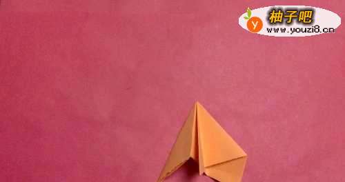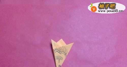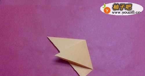 将正方形纸对角折,在找出中间点。如图所示。