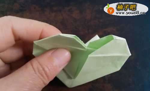 5把两侧的边向上折,我们把角向后折,如图二,再把上边的角向后折,如图三。