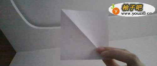 首先我们准备一张正方形的纸张,我们沿着对角线进行对折。我们将2边的角对准对角线进行对折的。