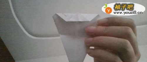 4将折纸朝另外一面进行翻折的,将折纸朝外进行翻折。