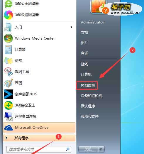 点击电脑左下角的开始菜单,选择“控制面板”选项。