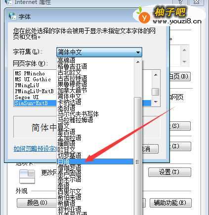 4点击字符集的下拉菜单,选择“日语”选项即可。