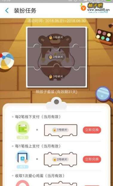 5碎片2需要设置支付宝进行一次线上支付来兑换,这个次数积累也仅限6月份,不过一次还是很容易达成的。
