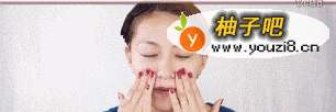 4第四节:用手指从腮帮下画个圈到鼻头下方,停顿一下。虽然表情很滑稽,但是对法令纹去除事半功倍。
