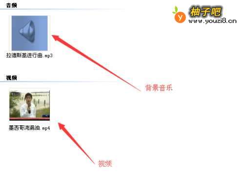 6图中所示为音乐和视频在时间轴的位置