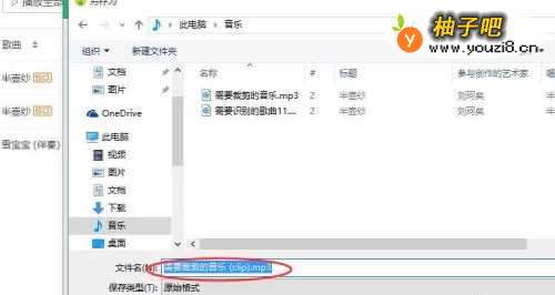 8如果裁剪合适,点击保存,会出正在保存的状态条,裁剪后的音乐会自动命名某某(clip),也能自己重新命名,方便记忆和找寻;