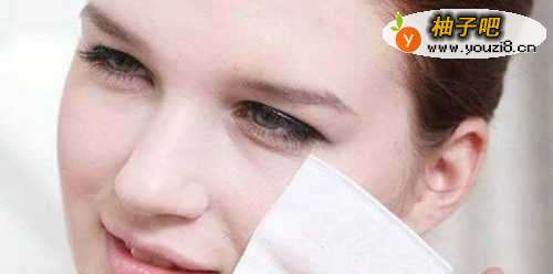 4脸部其他地方卸妆。还是准备两片化妆棉,倒上卸妆水,轻轻的擦拭脸颊、鼻子、额头、下巴等部位,下手不要太重,你的脸颊可是很娇嫩的。如果脸部卸妆用卸妆棉感觉摩擦太大,能直接用手在脸部打转卸妆。