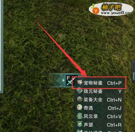 2添加蟹负后,鼠标浮动到游戏界面的右下角倒数第二个按钮上,点击弹出框中的【宠物秘鉴】按钮。