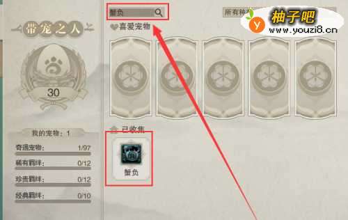 4选中搜索出来的【蟹负】,点击右侧的【召唤】按钮。