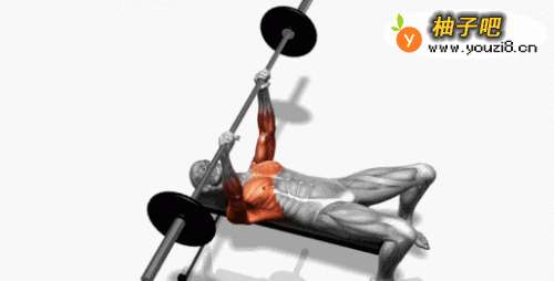 30仰卧平板杠铃肱三弯举