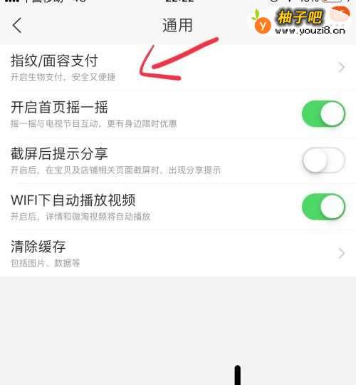 4现在我们在通用选项里面就能发现有一个配置指纹/面容支付的选项、然后我们继续点击指纹/面容支付进来。