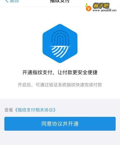 5开通指纹后让我们支付更为的方便、这里我们也能看一下指纹支付相关的协议书、然后我们再点击同意协议并开通。