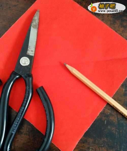 我们首先要准备好一张正方形红纸,一把剪刀,一支笔备用。