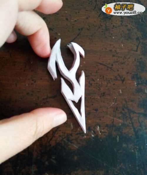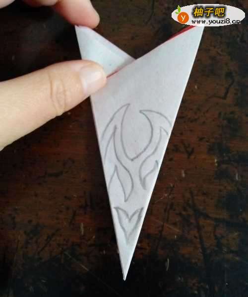 7然后我们在折好的纸上画上我们要剪得火焰图案。